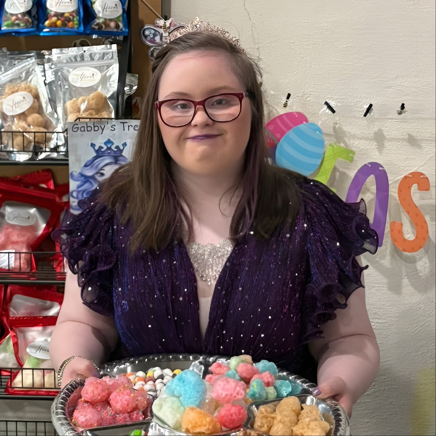 Gabriella is the joyful creator of our delicious freeze-dried candies. With her kind spirit, big smile, and love for spreading happiness, she pours passion into every batch she makes. Gabby loves meeting customers, sharing her favorite treats, and brightening days with her positivity.